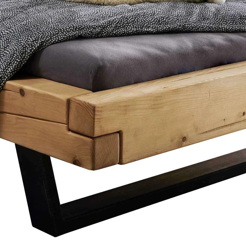 - Ansprechendes Balkenbett in Fichte Naturfarben und Schwarz