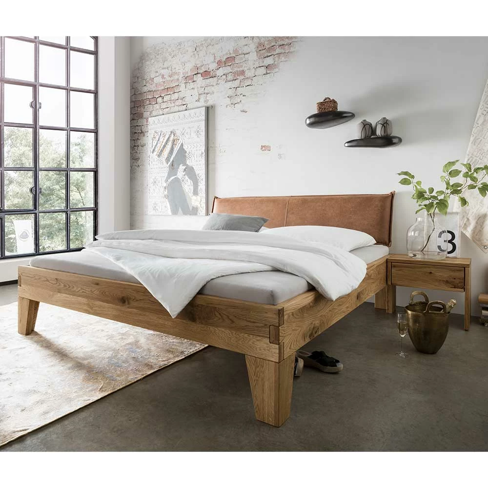 - Markantes Bett mit Konsolen in Wildeichefarben und Braun