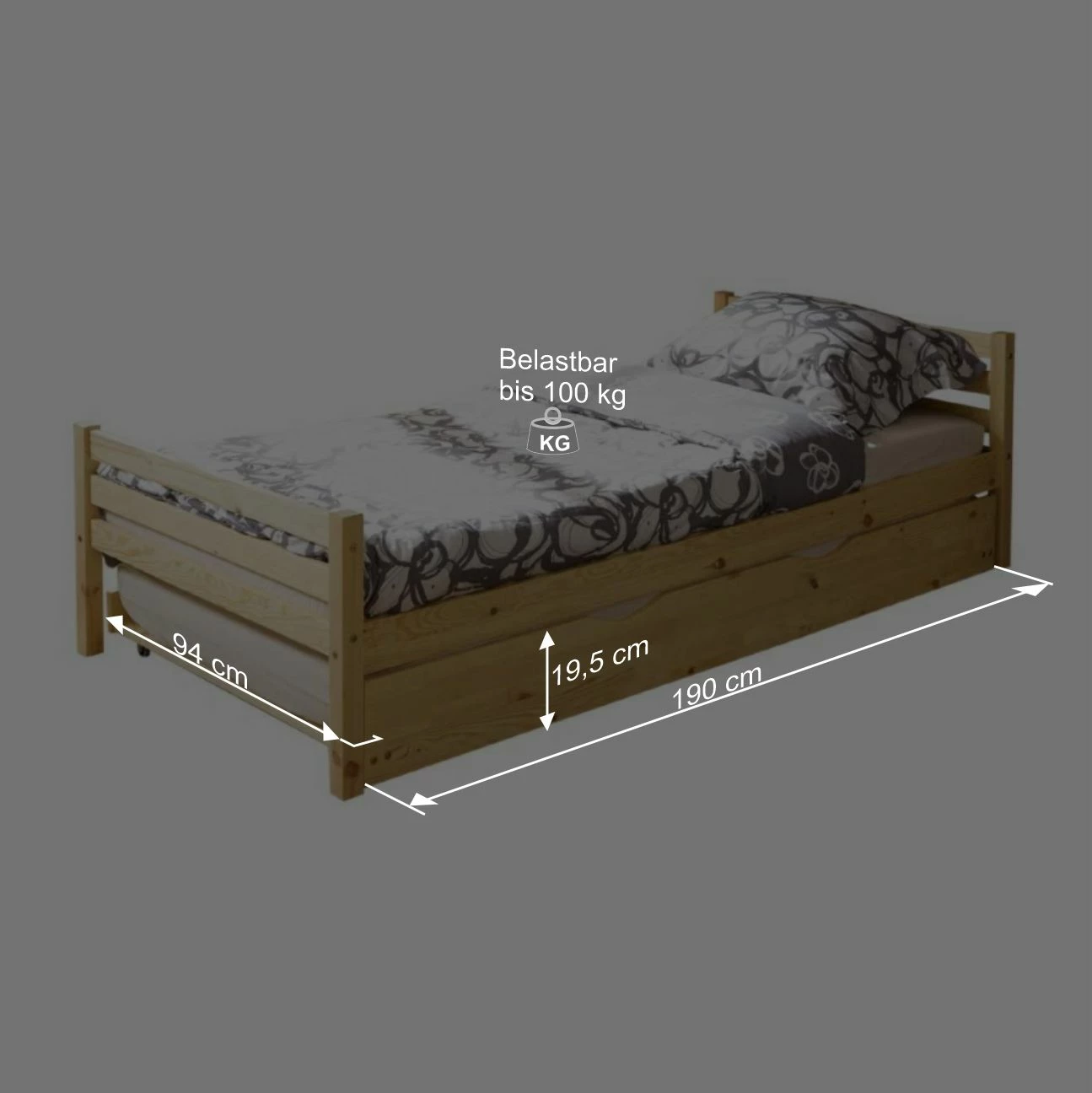 - Bettkasten optional erhältlich, Maße (BxHxT): ca. 94×19,5×190 cm, belastbar bis 75 kg