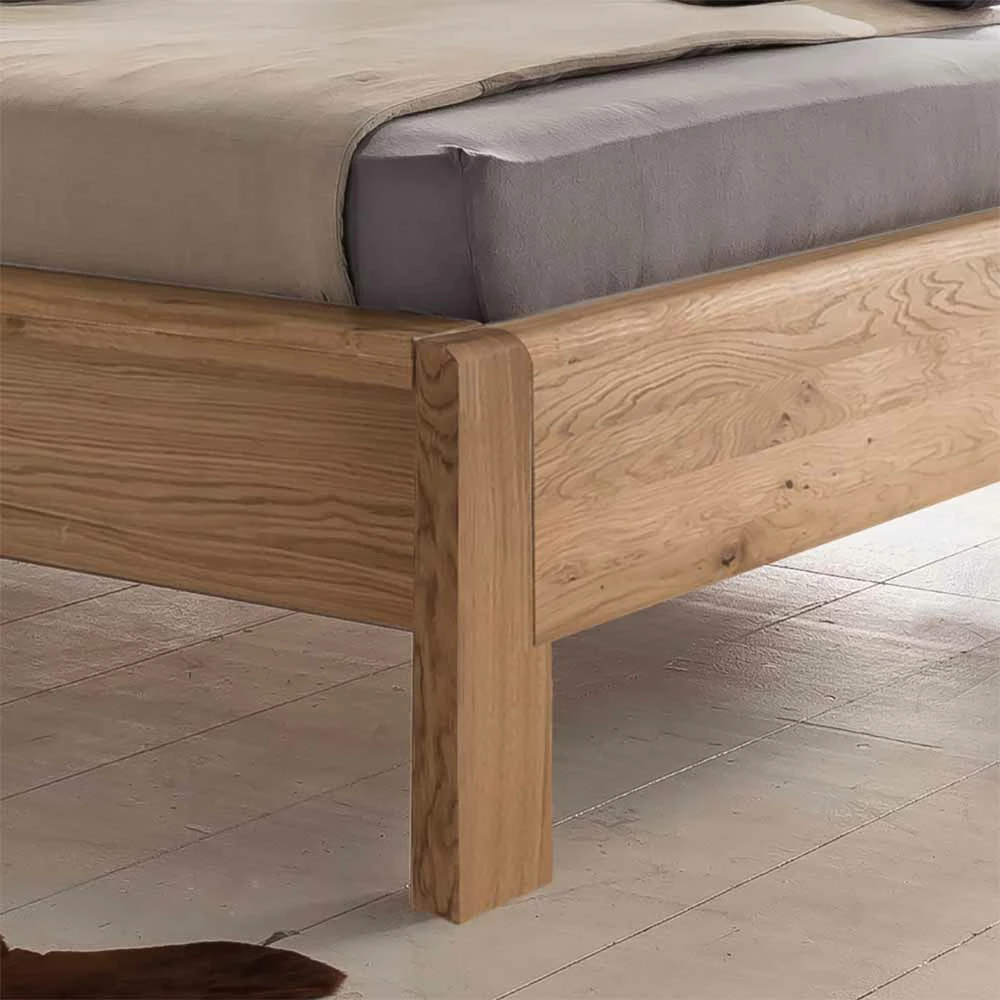 - Aus Eiche Massivholz (Fußteil), Spanplatte (Bettseiten) und Polyester gefertigt