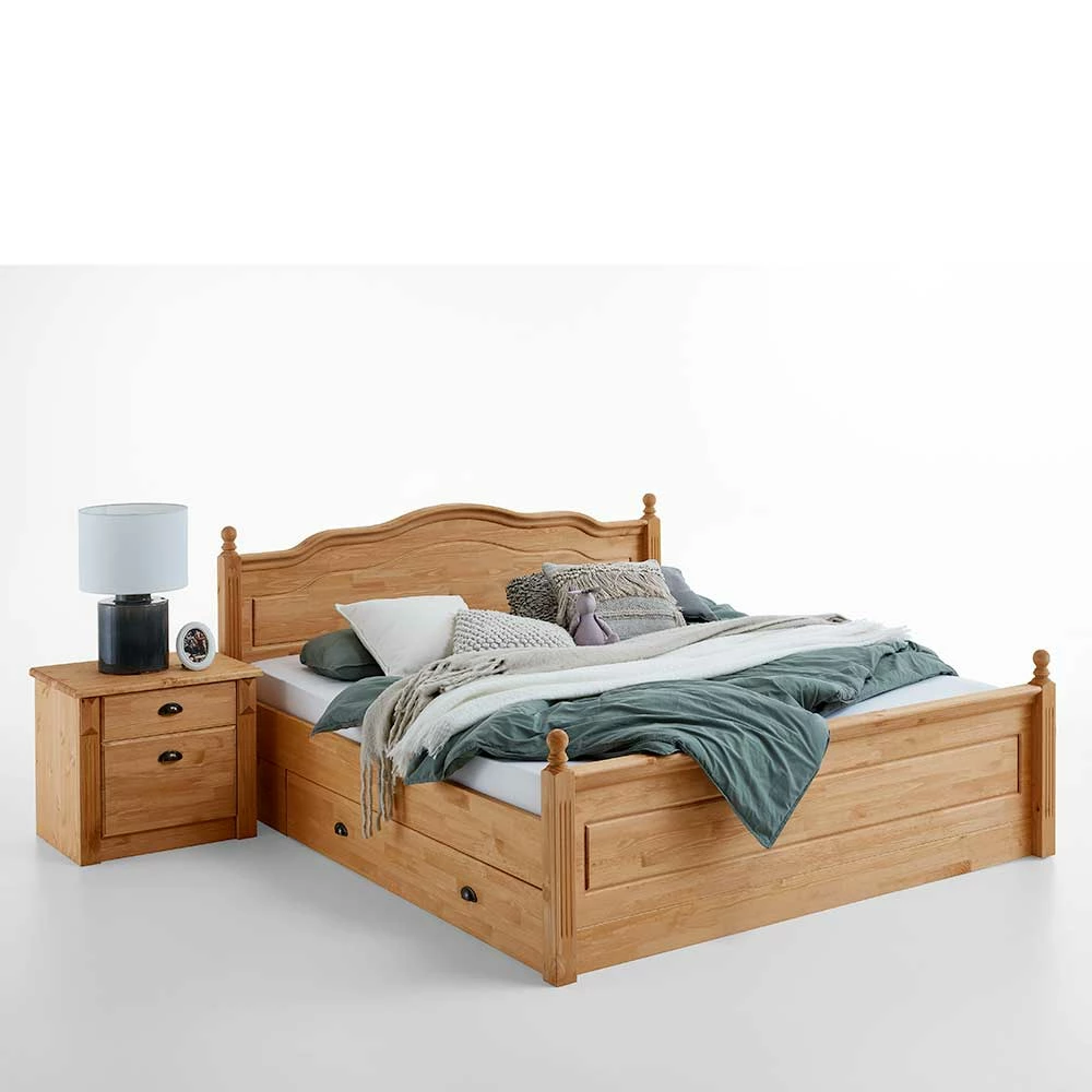 - Romantisches Landhaus Doppelbett in Kiefer Laugenfarben