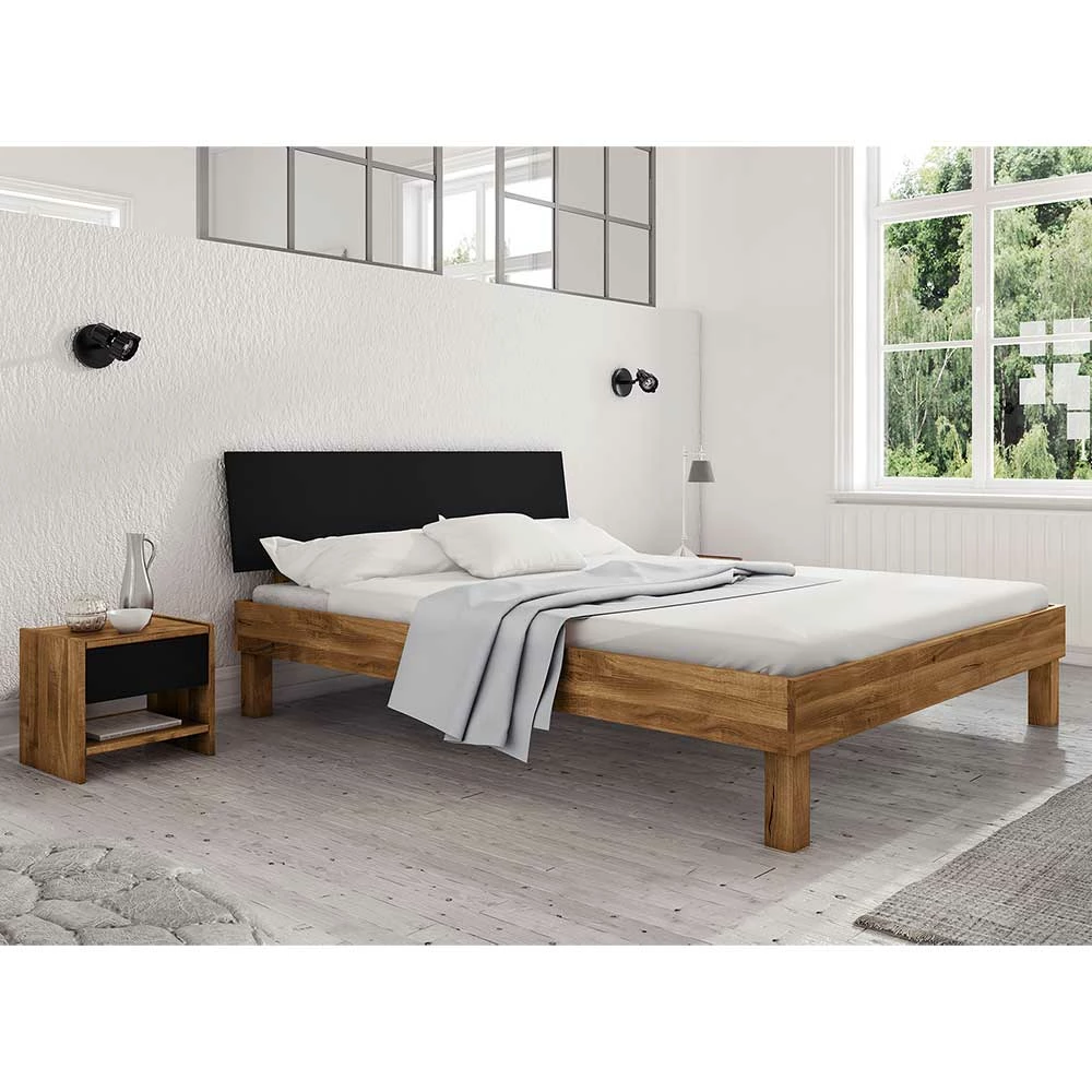 - Geschmackvolles Bett mit Nachtkommoden in Wildeichefarben und Schwarz