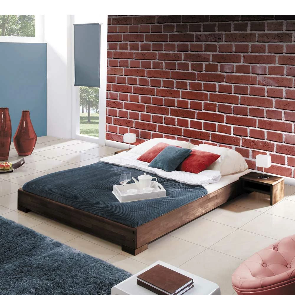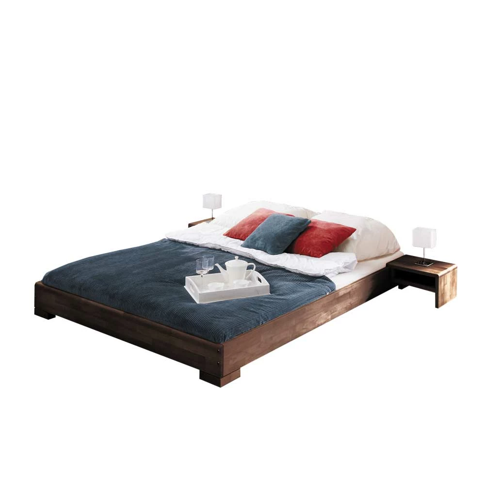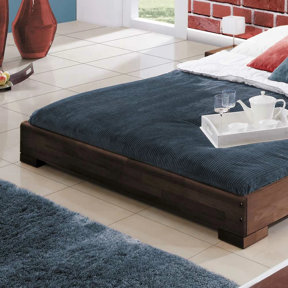- Solides Bett in Nussbaumfarben