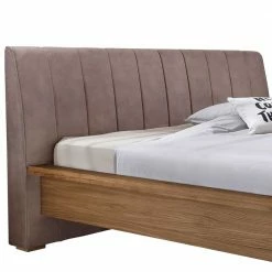 Holz Bettgestell Mit Stoff-Kopfteil In Braun – Flow