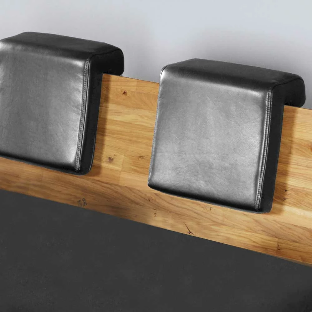 - Bequemes Kopfteil mit zwei schwarzen Kissen (Kunstlederbezug)