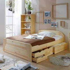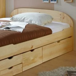 - Natürliches Kiefer Doppelbett mit Schubkästen