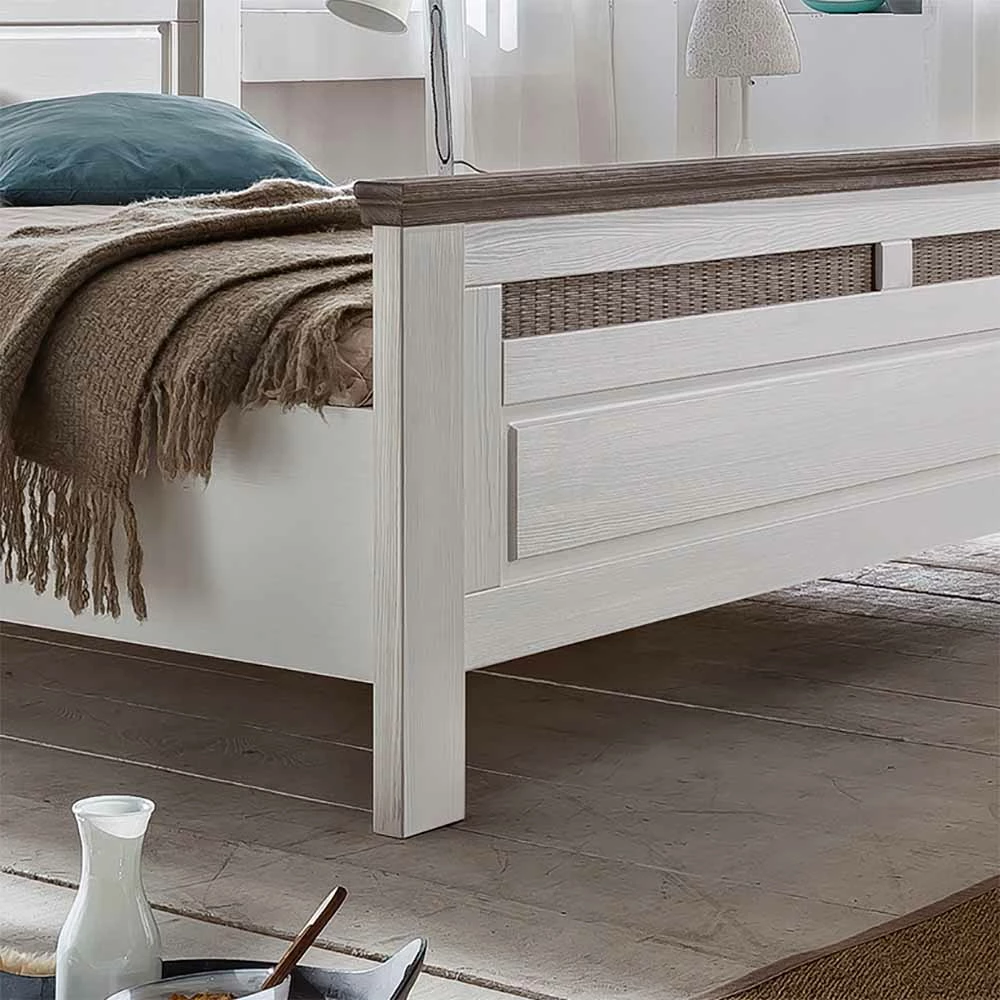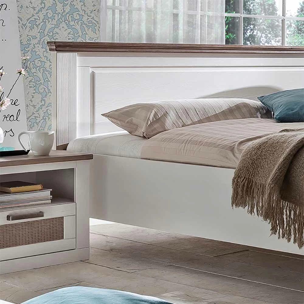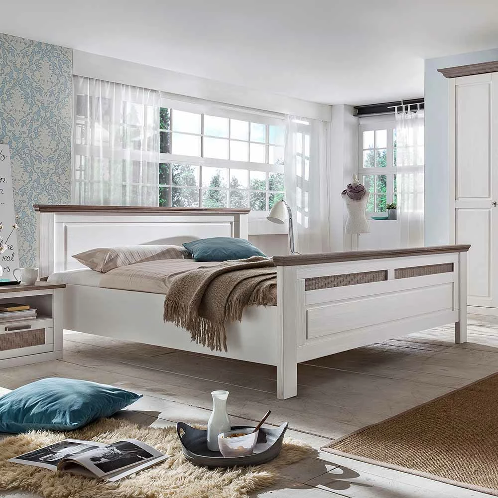 - Traumhaftes Landhaus Bett in Weiß und Taupe