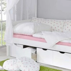 - Fünf Schubfächer unterhalb des Bettes bieten reichlich Stauraum und sorgen für Ordnung