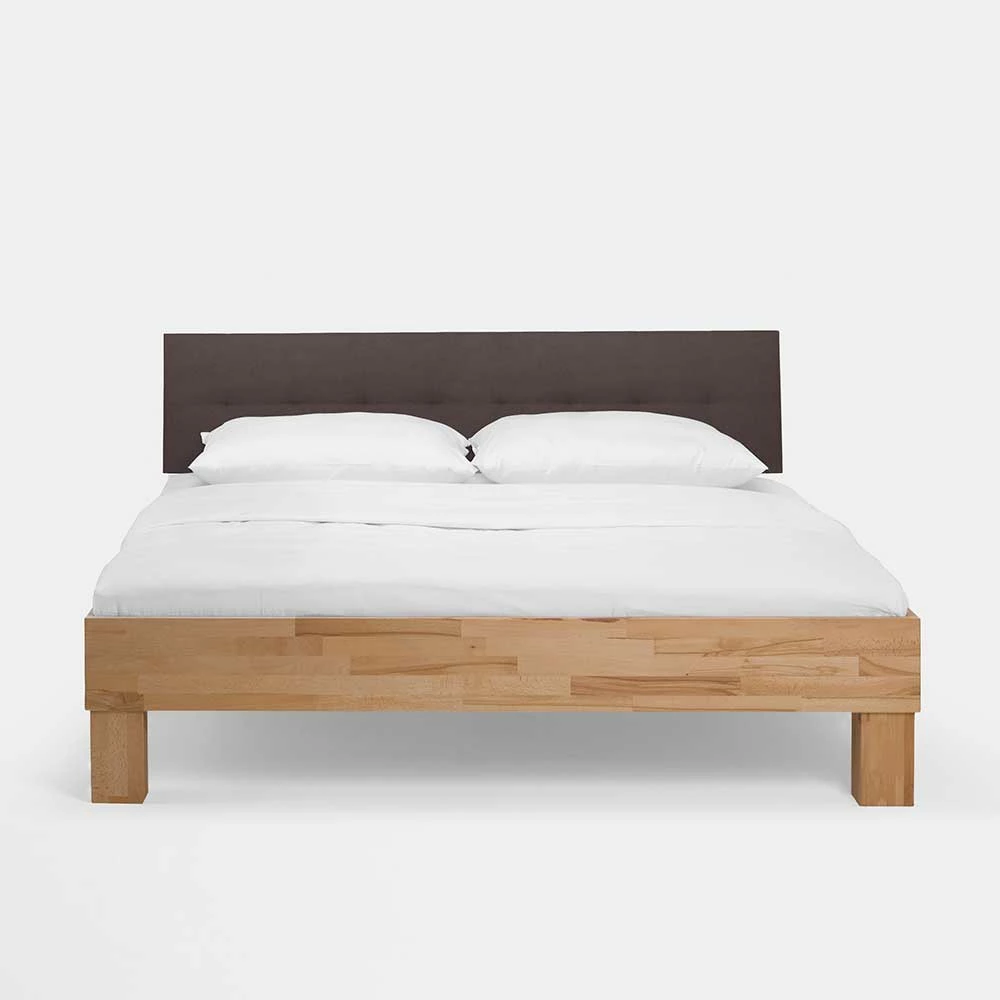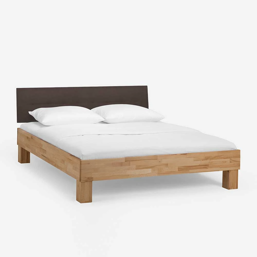 - Modernes Bett mit Nachtkommode in Kernbuchefarben und Grau