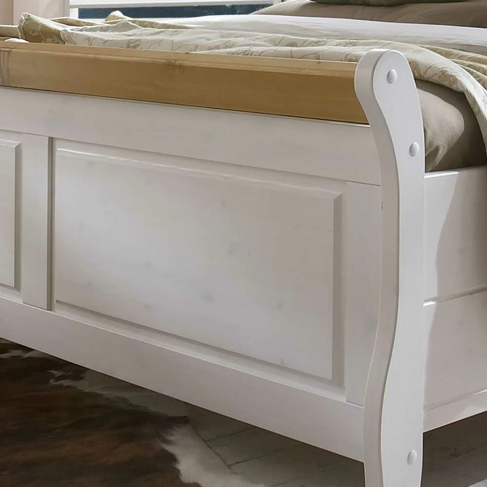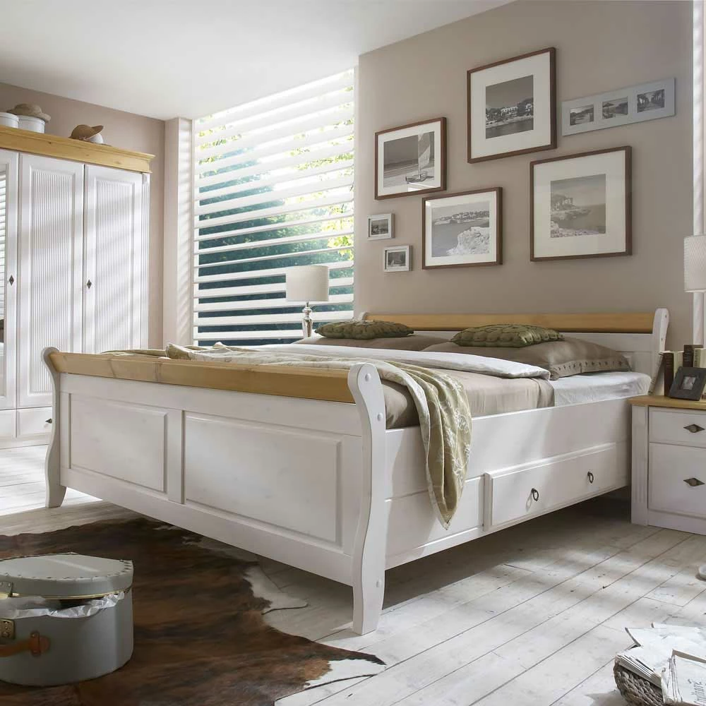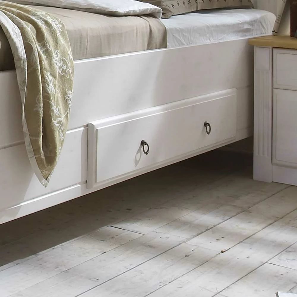 - Schönes Doppelbett in Weiß mit Kiefer laugenfarbigen Absetzungen