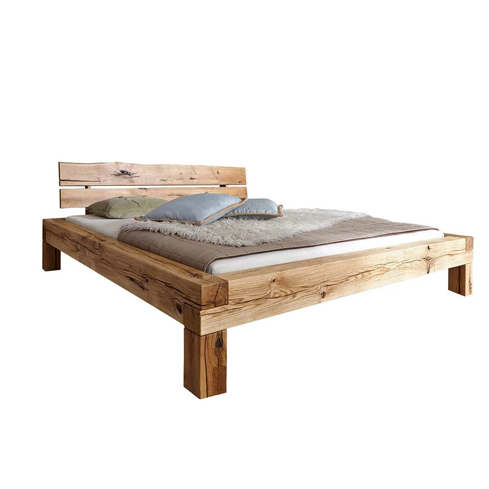 Rustikales Holzbett Mit Kopfteil Baumkante – Satton