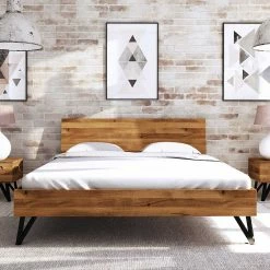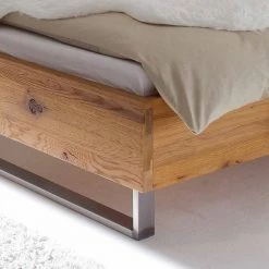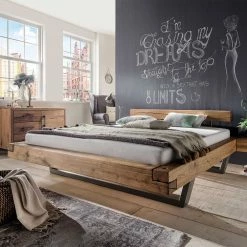 - Geschmackvolles Balkenbett in Wildeichefarben