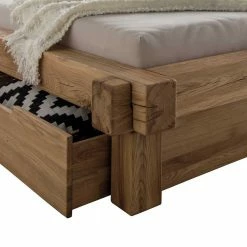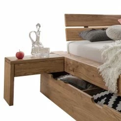 Schubkastenbett Aus Wildeiche Balken Twinn Mit 2 Nachttischen (dreiteilig)