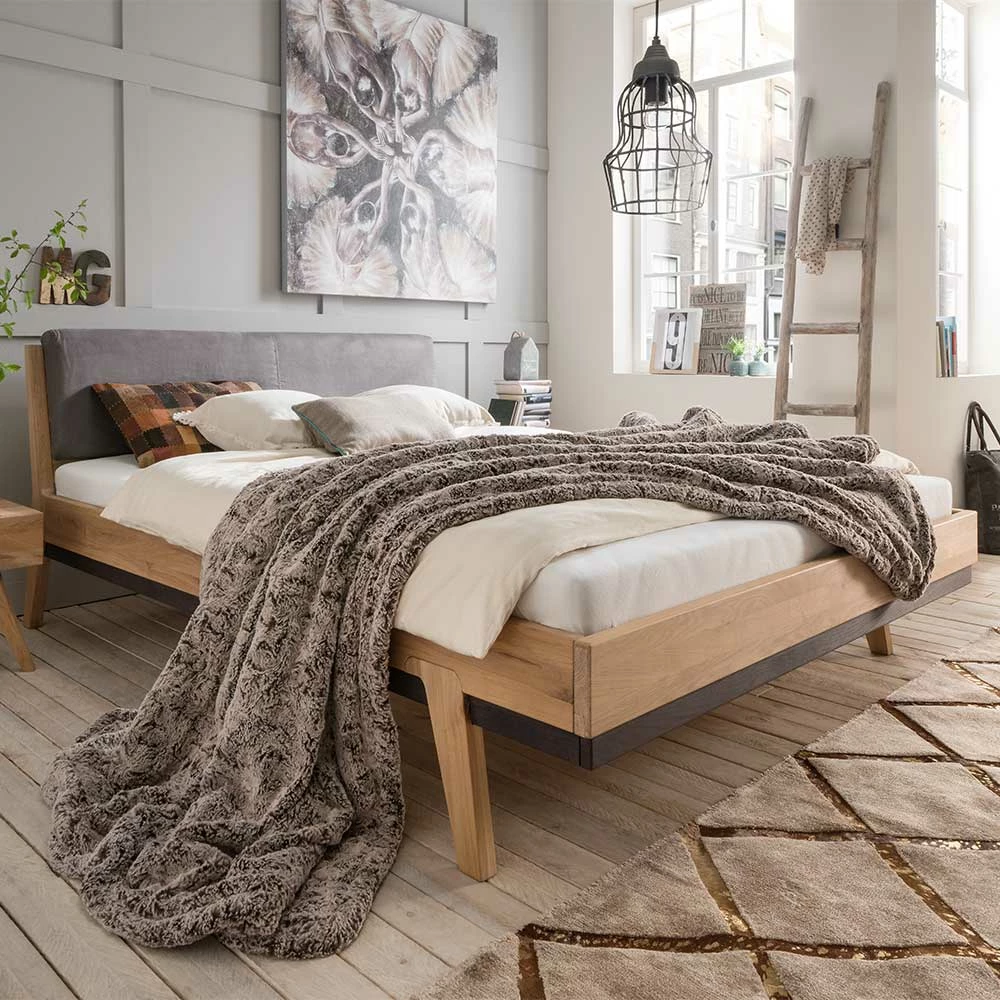 - Zeitloses Bett in Wildeiche Bianco und Anthrazit