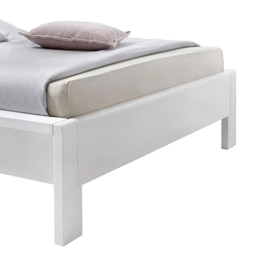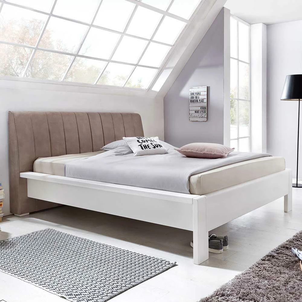 Teilmassives Doppelbett In Weiß Pinie Classico Mit Kopfteil Braun Gepolstert