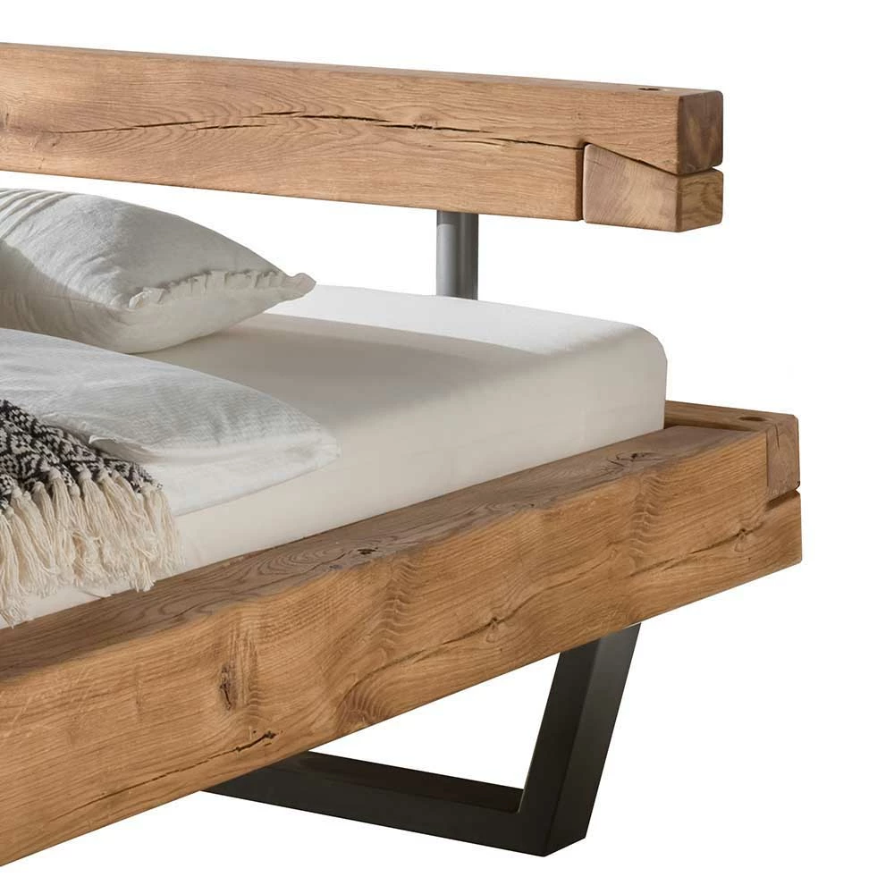 Wildeiche Balkenbett In Schwebeoptik Iloventa Mit Metallkufen Industrial