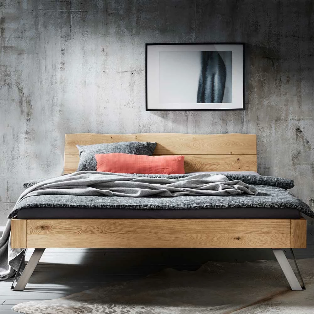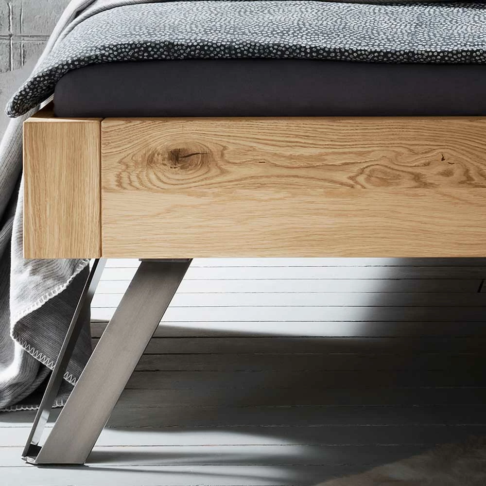 Wildeiche Bett Mit Metallfüßen – Zennian