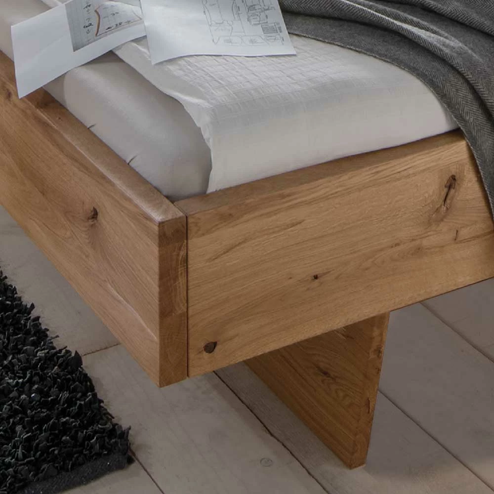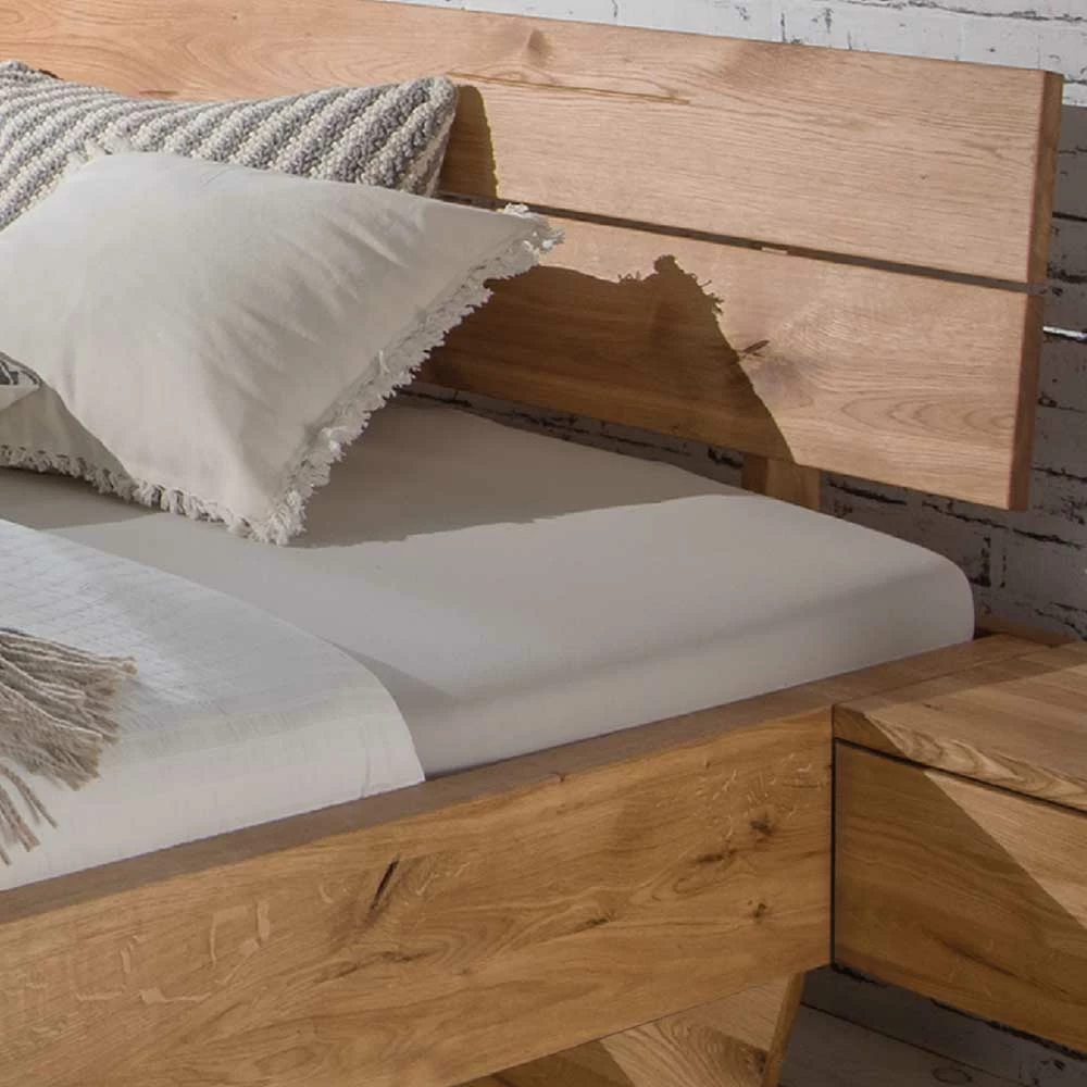 Wildeiche Bett Set Mit Doppelbett – Smiralda (dreiteilig)