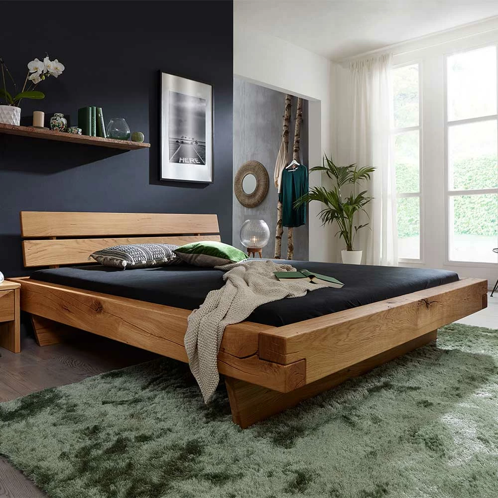 Wildeiche Doppelbett Mit Balken Rahmen – Pegira